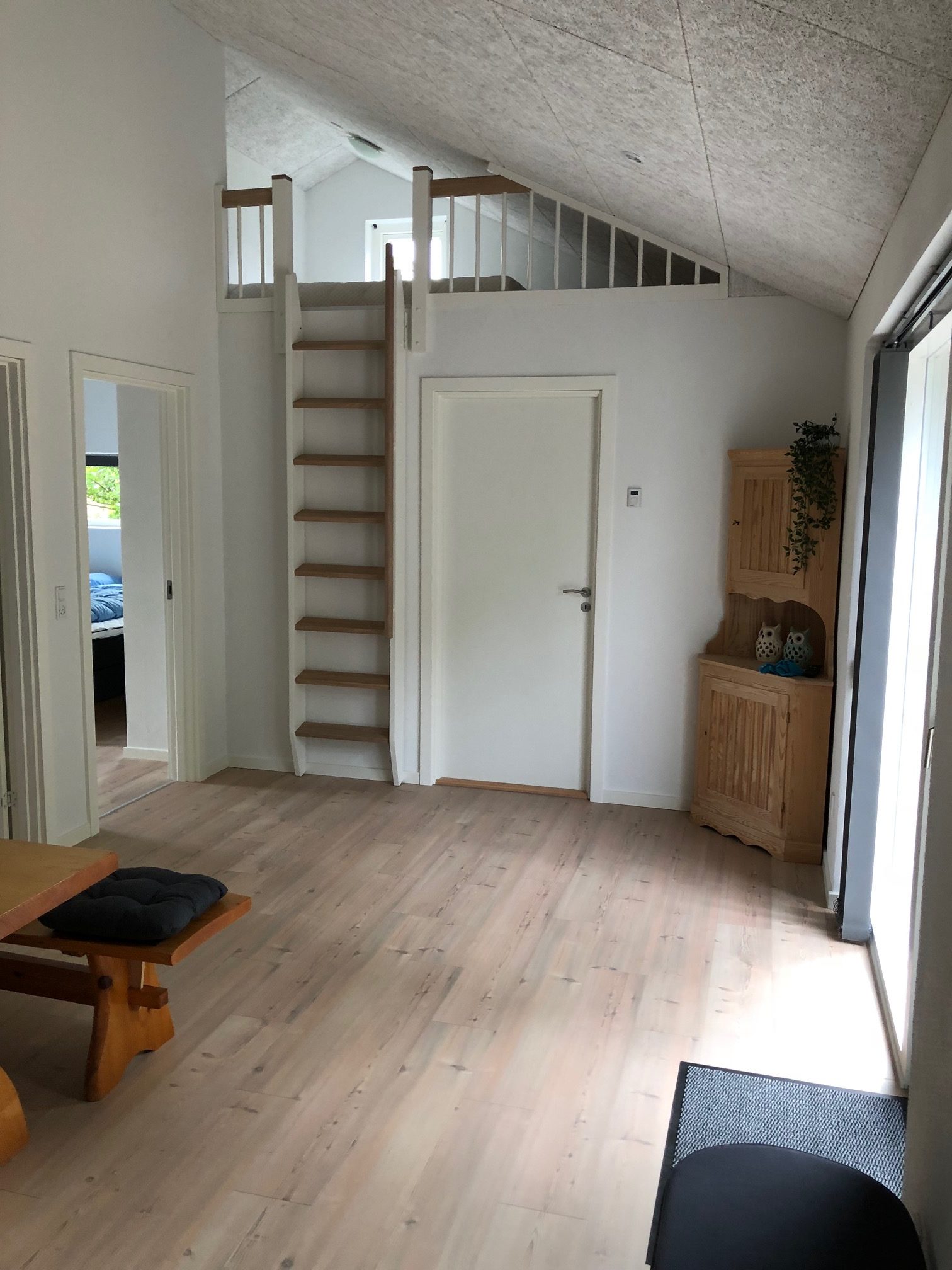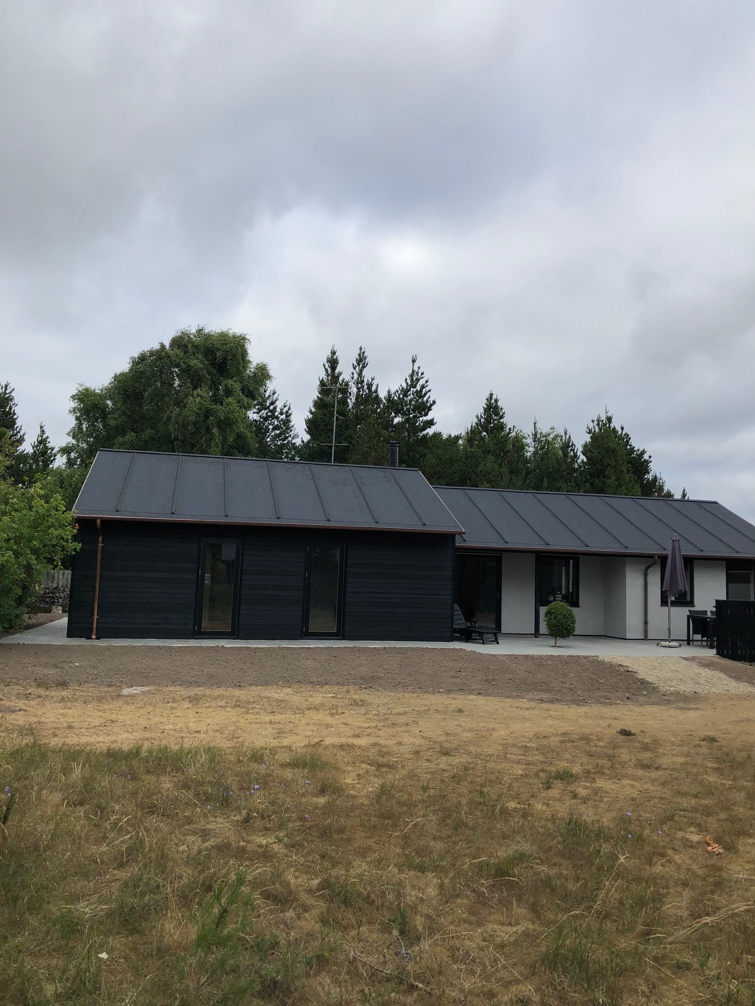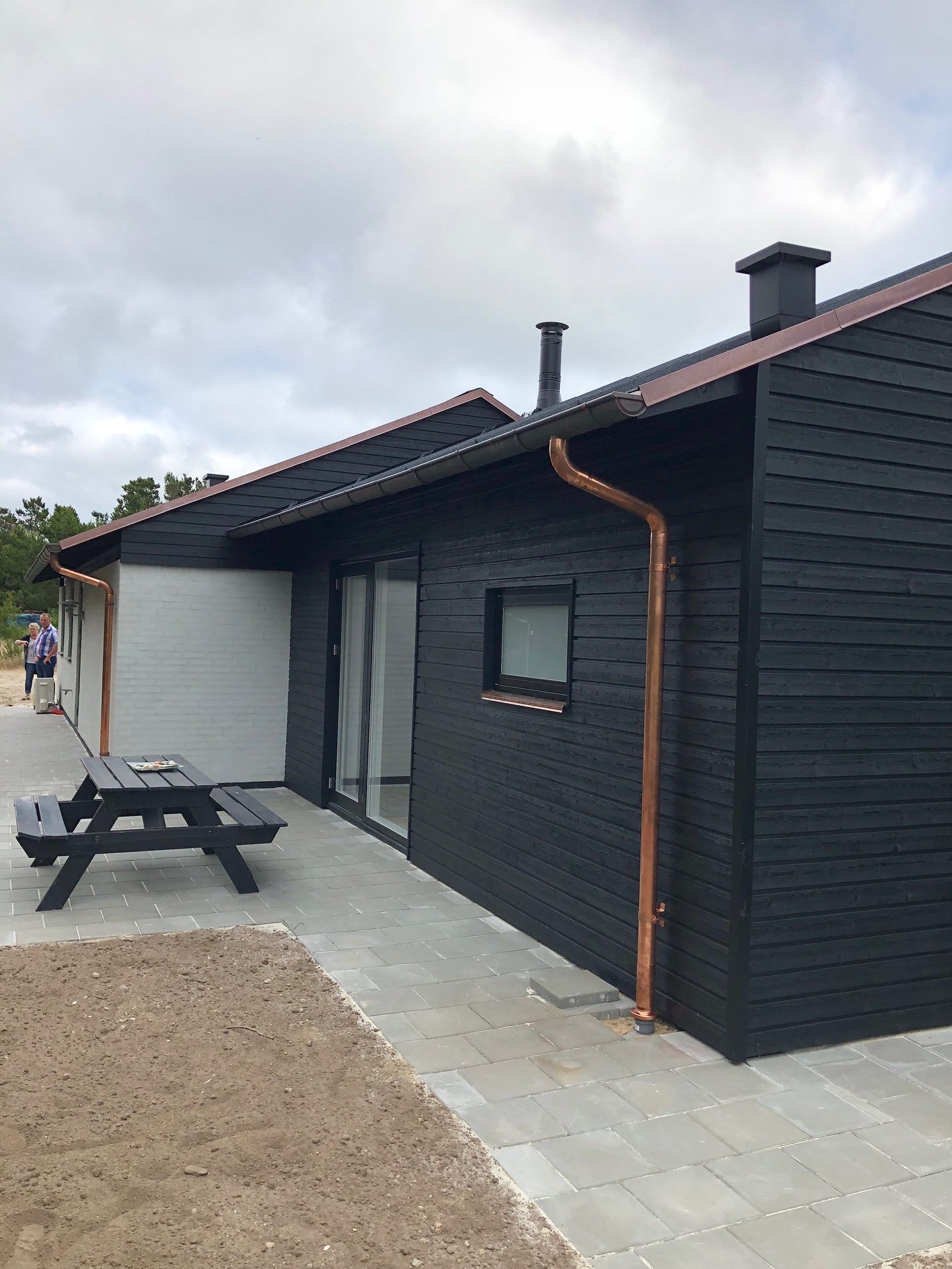 Om / Tilbygning Sommerhus, Blåvand OmbygningenOmbygningen omfattede ligeledes vandskuring af det eksisterende sommerhus samt udskiftning af tagbelægning og vinduer samt nyt badeværelse. Stort billede Tidsmæssigt udtrykSommerhuset skarpe tilbygning er tilpasset huset oprindelige form, og giver det samlede byggeri et mere nutidigt og moderne udtryk. Stort billede TilbygningTilbygningen er beklædt med sortmalede profilbrædder, kobber tagrender og nedløb samt listetækning med sort tagpap. Stort billede Nyt OpholdsrumOpholdsrummet virker som fordeling til de to nye værelser samt badeværelse hvor der er lavet en hems ovenpå Stort billede